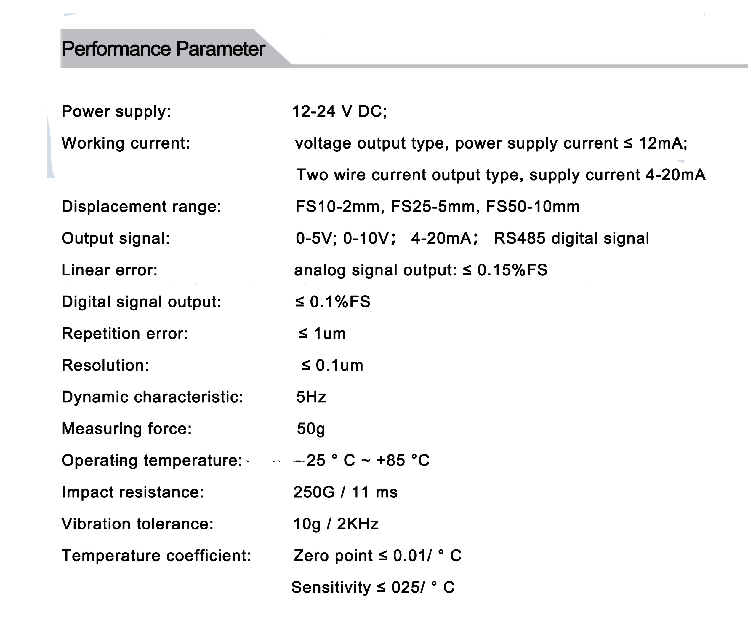 Linear error: ???????analog signal output: ≤ 0.15%FS