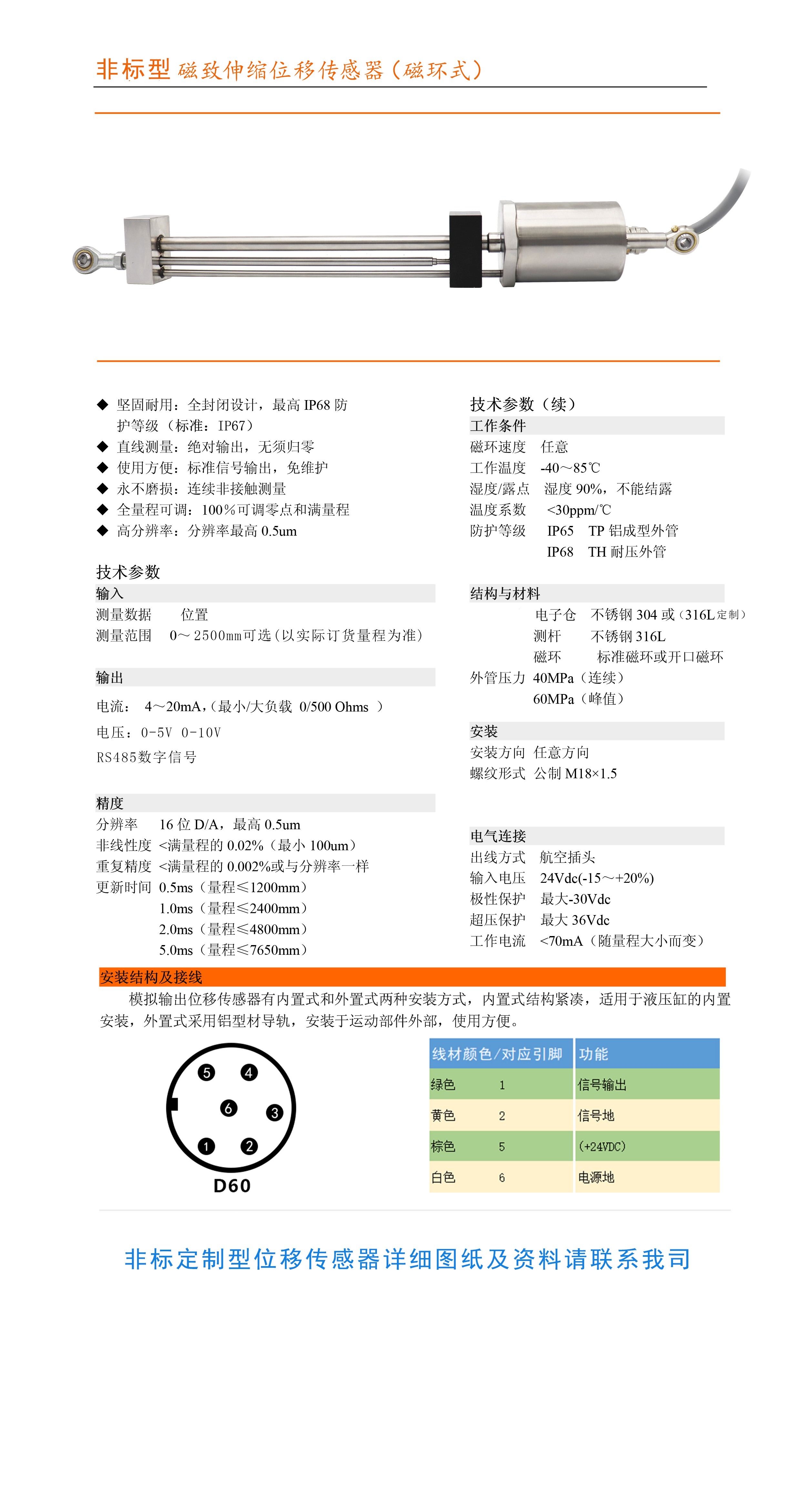 非標(biāo)定制型不銹鋼防水拉桿式磁致伸縮位移傳感器,可以長(zhǎng)期水下使用,適用于各種惡劣環(huán)境使用